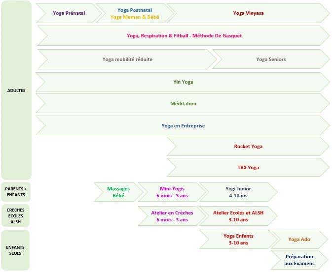 - Yoga pour les plus jeunes : Yoga Enfants, Yoga en Famille (Mini-Yogis et Yogi Juniors), Yoga Ado
