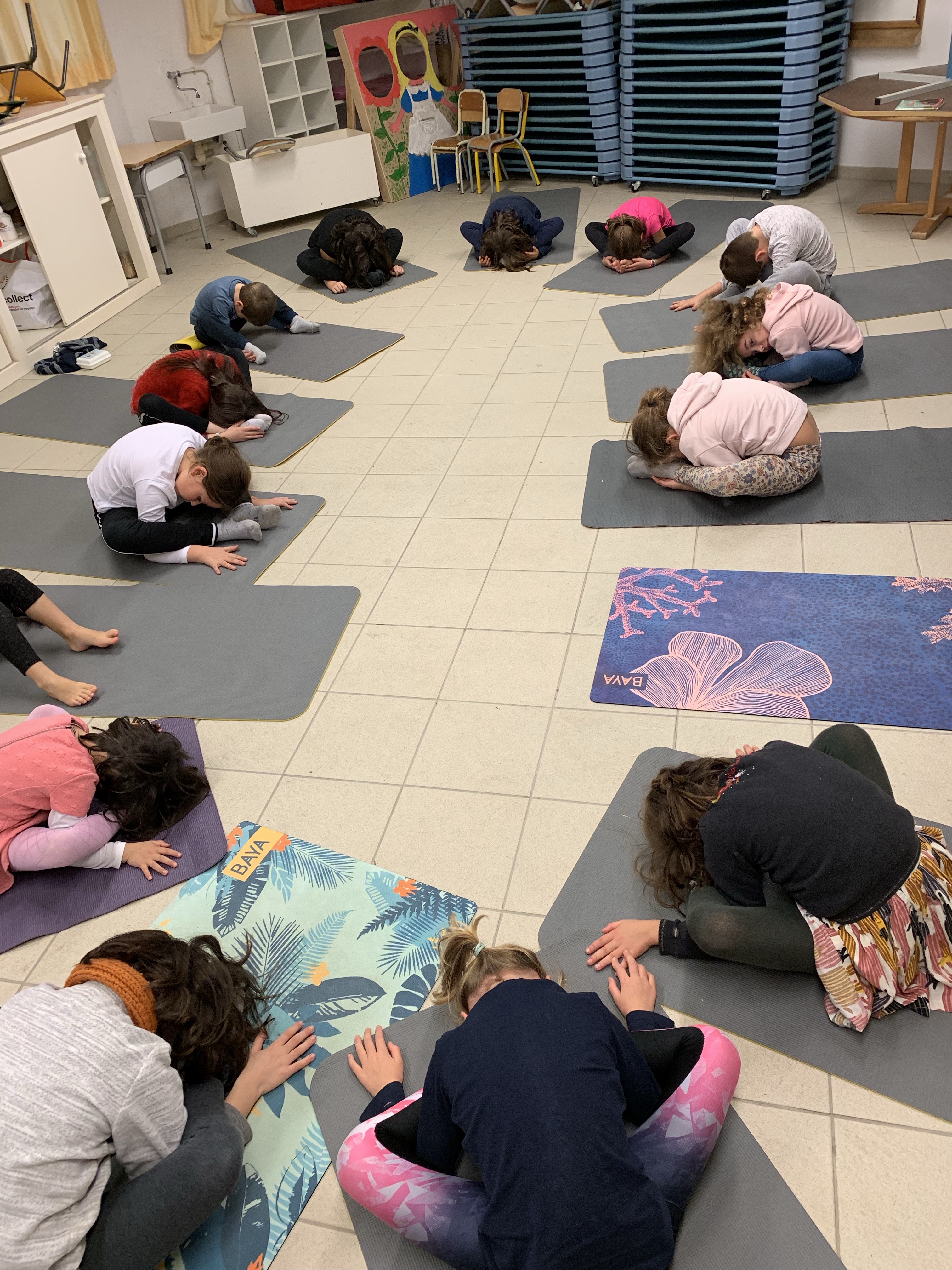 Sur la base de jeux et d’histoire nous travaillons les différentes branches du yoga, notamment les asansas (postures), le pranayama (exercices de respiration), la méditation.